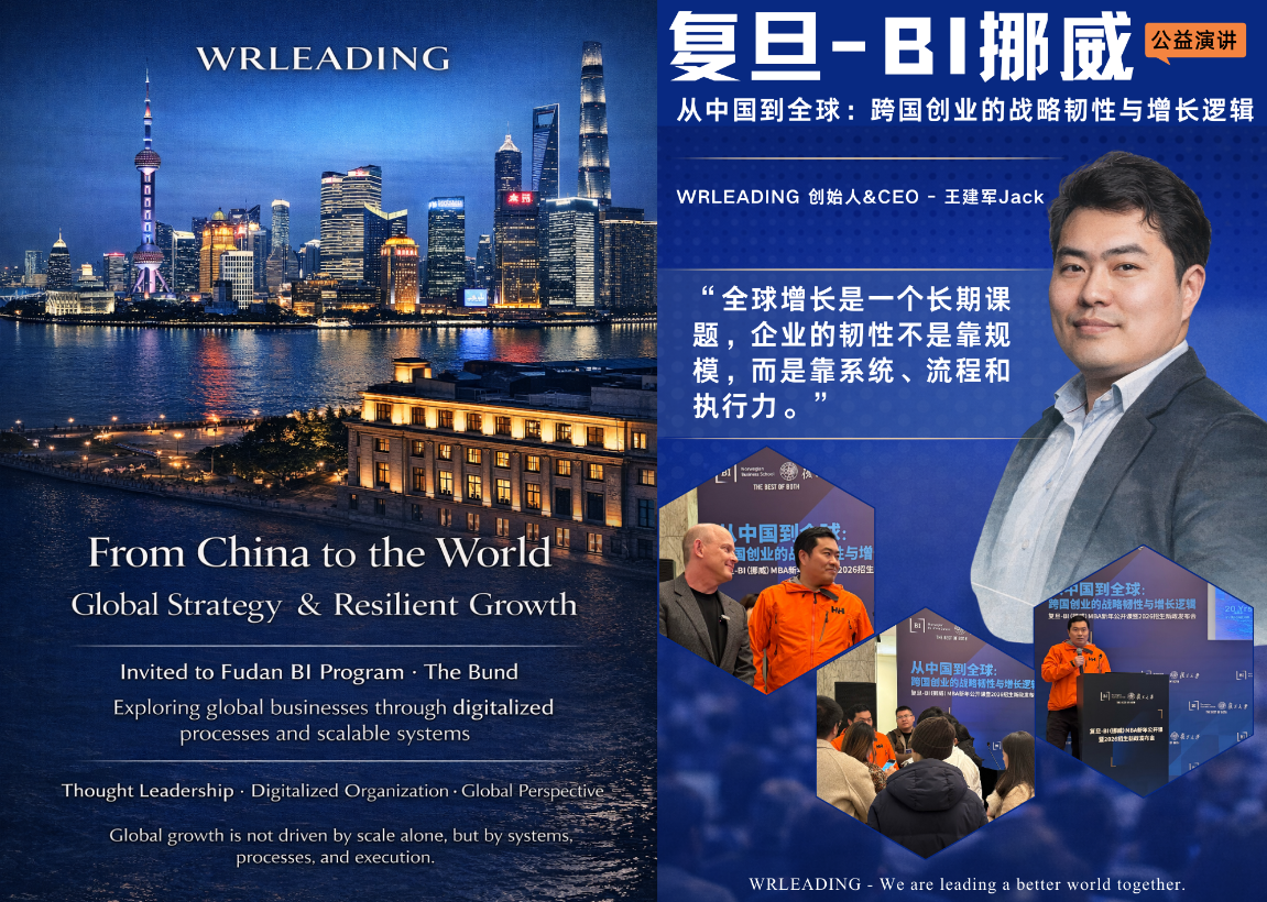 作为一家持续推进国际化布局的企业,WRLEADING 近年来不断通过流程数字化和系统化运营,提升跨区域协同效率,为全球业务的可持续发展奠定基础。此次受邀参与复旦 BI 项目的思想交流,不仅是对企业全球化实践的认可,也为 WRLEADING 在更广阔的国际商业语境中,与不同领域的管理者探讨长期增长路径提供了宝贵契机。