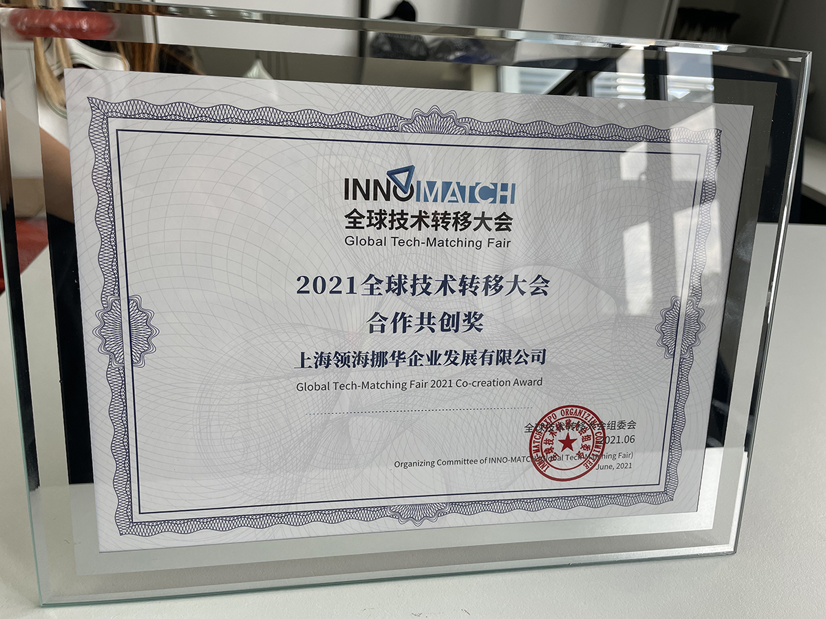 2021全球技术转移大会,上海领海挪华企业发展有限公司荣获“合作共创奖”