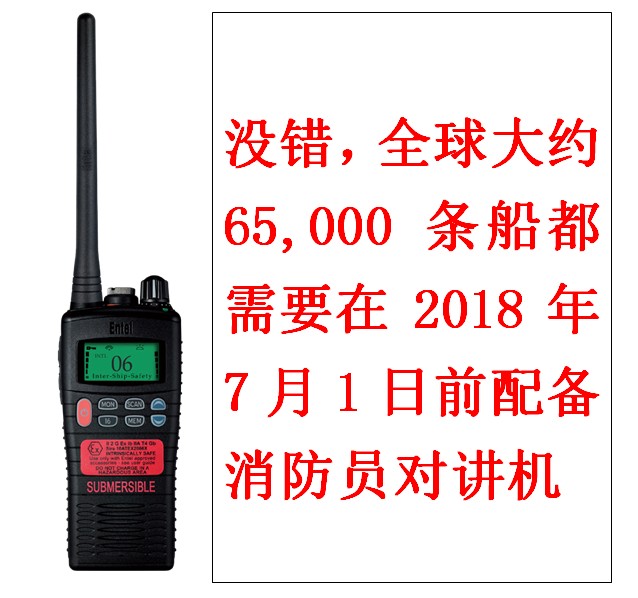 根据SOLAS 2012 11月修正案>第 II-2 章>第10条>第10.10条>第10.10.4条规定:对于2014年7月1日或以后建造的船舶,船舶上消防队员应携带至少两台双向便携式无线电话机用于消防员的通信。这些双向便携式无线电话机应为防爆型或本质安全型。2014年7月1日以前建造的船舶应不迟于2018年7月1日以后的第一次检验符合本要求。鉴于该要求即将在2018年7月1日及其以后追溯至所有适用船舶,敬请各位船东和管理公司及时配备消防员对讲机。