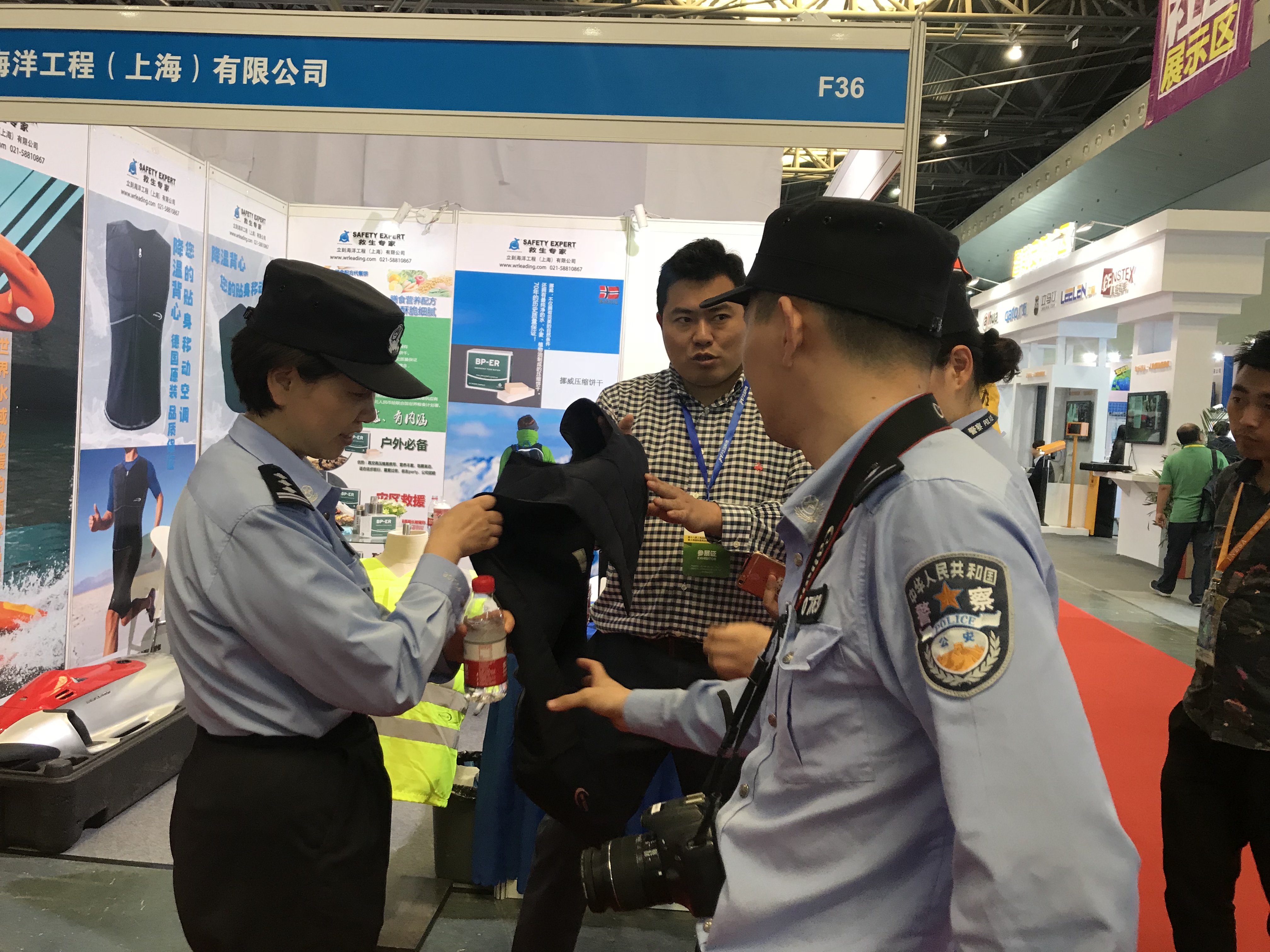 领海集团展位前来参观和咨询的专业观众络绎不绝。围绕安全产品、安防主题的需要,领海集团除了展示水域救援服、智能救援机器人、灭火设备等,还新推出了Skysaver高楼火灾逃生背包、E-cooline高温仿生降温背心、GC-Rieber来自挪威的能量饼干。