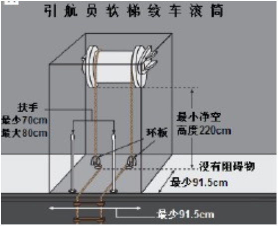 如有软梯绞车滚筒,其布置应不阻碍引航员安全登离船舶。