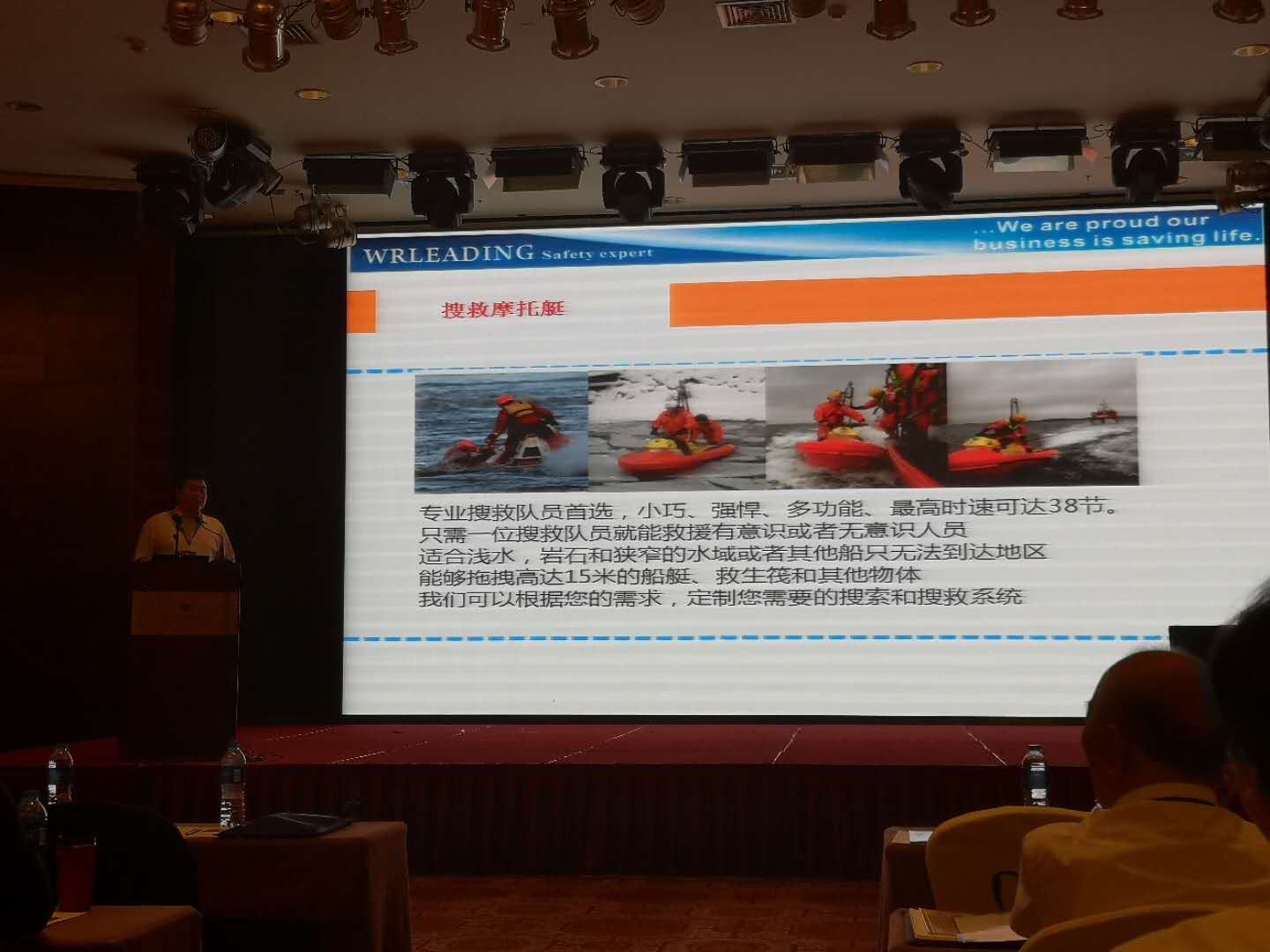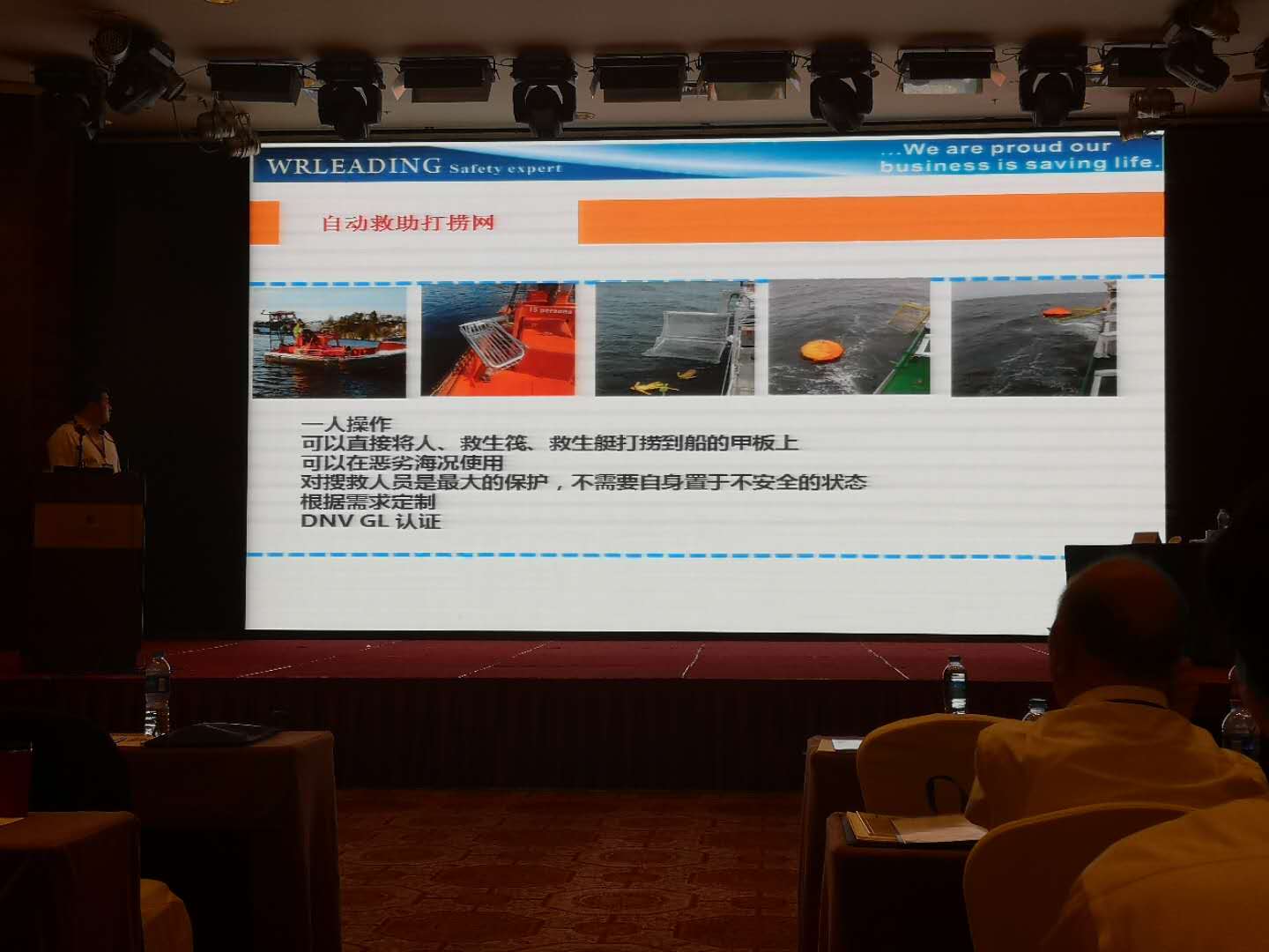在此次论坛上,王建军介绍了领海集团的发展情况,并且重点介绍了领海的新产品,包括Seawind飞行员服、快速巡逻艇和自动救助打捞网。这些新产品赢得了与会交通部救捞局领导和来自18个国家的代表一致称赞。