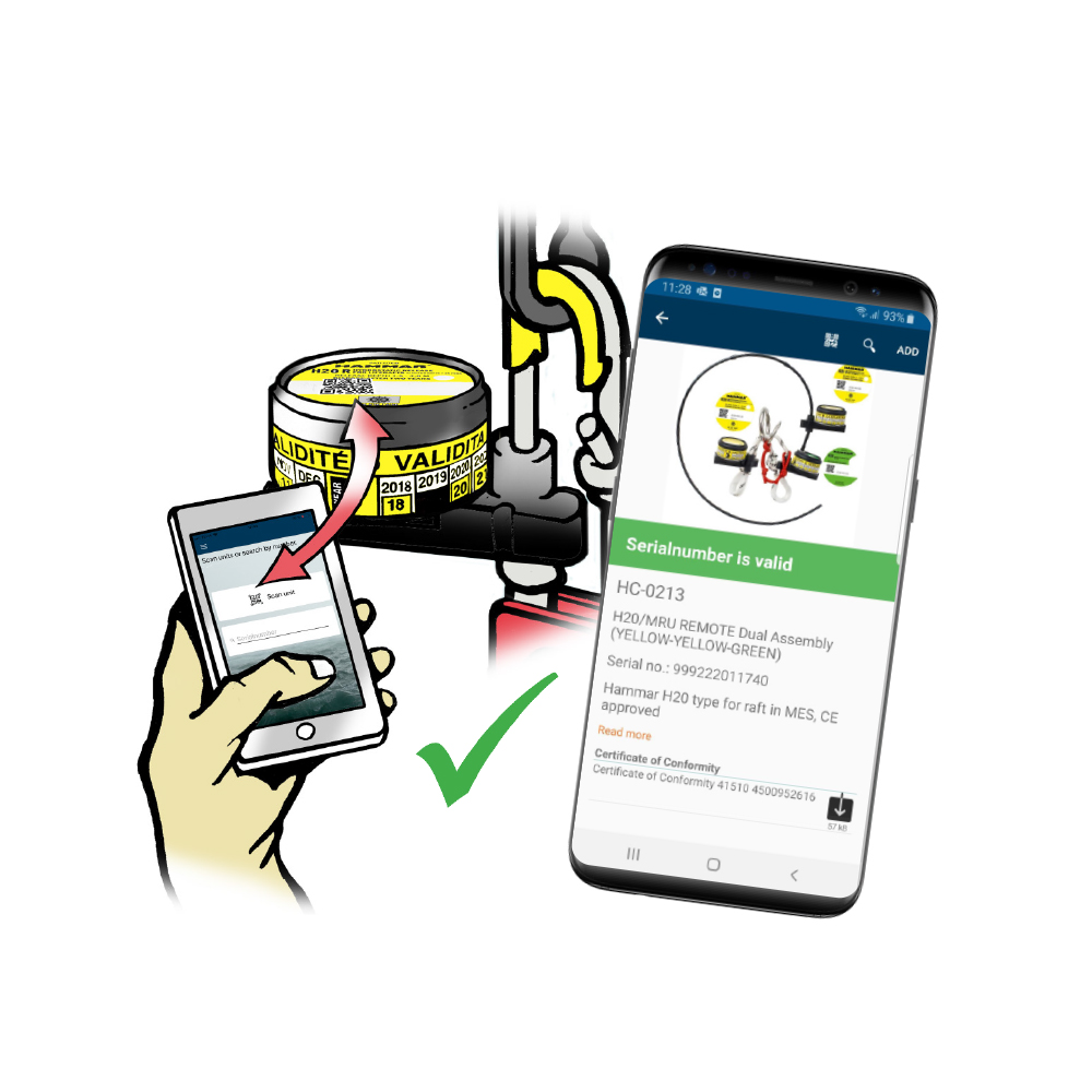 通过扫描MarCode,您将自动收到一份认证,确认该装置为原装Hammar产品。您还可以即时访问DoC和CoC。
