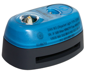 救生衣灯是有灯罩、灯座、发光体、电路板、电池及连接件灯主要构件组成的灯具,适用于夜间向救助人员指示穿着救置。