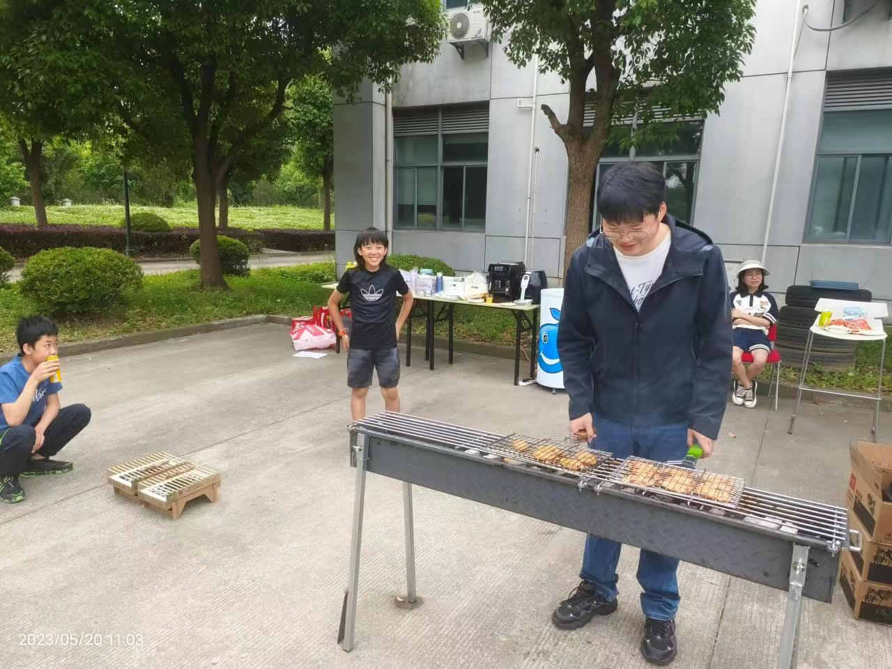 参观完工作区域后,大家移步至室外大草坪开启愉快的烧烤、K歌、游戏活动。