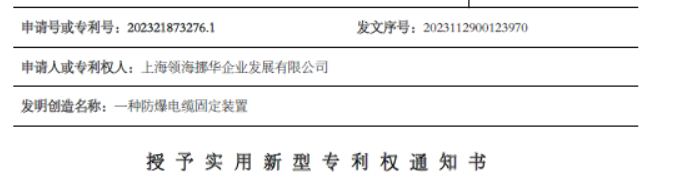 领海防爆电缆固定装置,具有结构紧凑、多重密封、防爆、可容纳电缆直径范围大等特点,可实现电缆的快速连接与固定,起到防爆和水密的目的,大大提高船舶电气设备的安全性能。目前已获得国家专利授权。