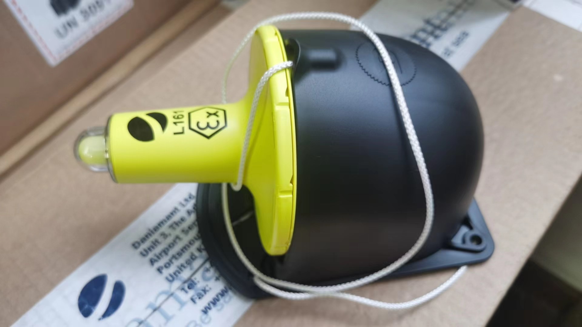 操作:当救生圈展开时,系索将从其安装支架上提起灯,离开支架后,连接在开关上的撕裂线将打开灯。打开时,该灯将提供至少2 Cd的闪光。
