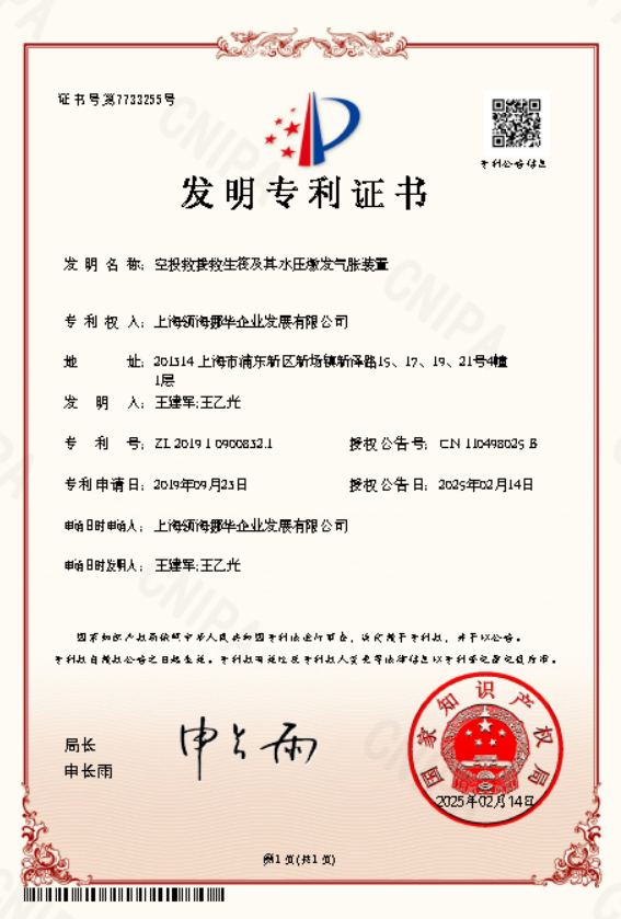 截止目前,上海领海挪华企业发展有限公司已经获得发明专利授权4项,发明专利授权在途2项。